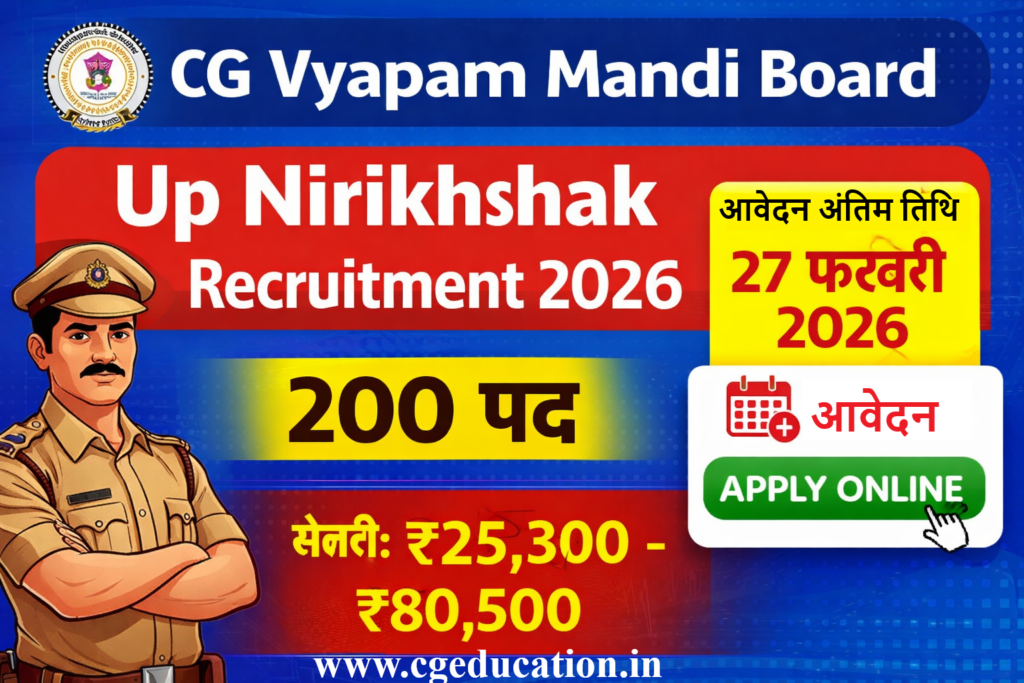 छत्तीसगढ़ राज्य कृषि विपणन (मंडी) बोर्ड, नया रायपुर द्वारा उप निरीक्षक (Up Nirikshak) के पदों पर सीधी भर्ती हेतु आधिकारिक
